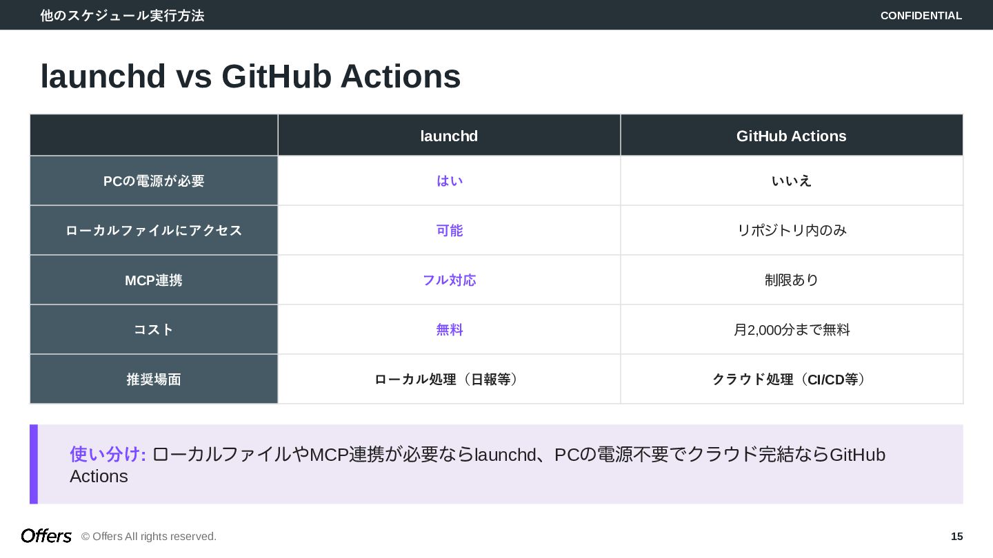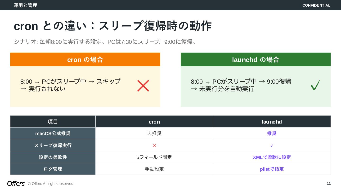 macOSのlaunchdで定期実行を自動化する方法を解説。plistファイルの書き方、登録・解除・ログ確認のコマンド、GitHub Actions(クラウド)との使い分けまでカバーします。