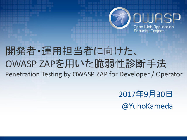 2.2.0 2013/09/27 ver 2.2.2 2013/11/04 ZAP Evangelist制度開始 2014 2014/03/17 AppSec APACにてハンズオントレーニング 2014/03/27 ZAP Evangelistに日本人初の登録 2014/04/10 ver 2.3.0 2014/05/21 ver 2.3.1 2015 2015/04/14 ver 2.4.0 2015/07/30 ver 2.4.1 2015/08 ZAPスクリプトコンテスト 2015/09/07 ver 2.4.2 2015/12/04 ver 2.4.3 2016 2016/06/03 ver 2.5.0 2016/06/03 bugcrowdでバグバウンティプログラム開始 2017 2017/03/29 ver 2.6.0