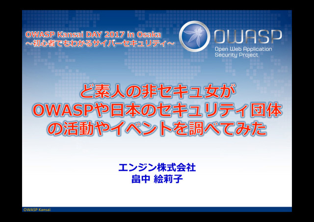 OWASP Kansai エンジン株式会社 畠中 絵莉⼦子