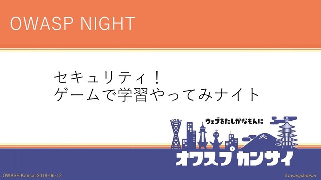 OWASP Kansai 2018-06-12 #owaspkansai セキュリティ! ゲームで学習やってみナイト OWASP NIGHT