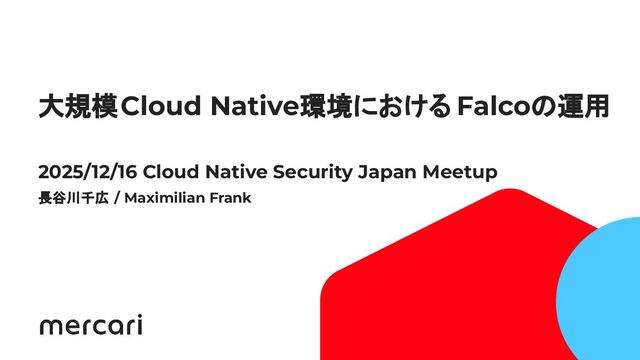 ・本資料は、2025年12月16日に行われたCloud Native Community Japan: CNAPP Security Meetup にて、長谷川千広とMaximilian Frankで発表した資料になります。