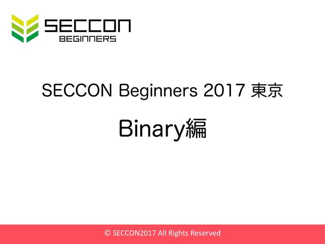 SECCON Beginners 2017 東京で行ったBinary編のスライドです。