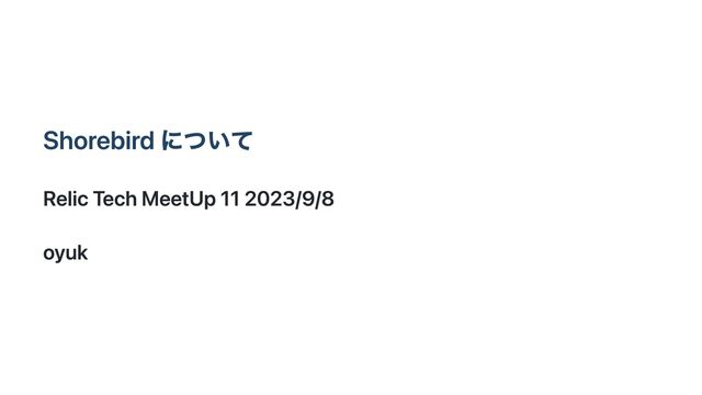 Shorebird について Relic Tech MeetUp 11 2023/9/8 oyuk
