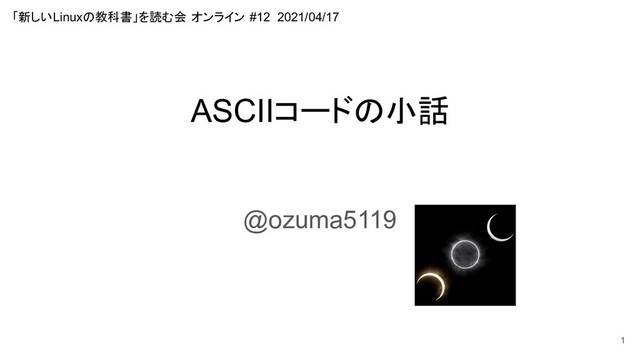 ASCIIコードの小話 @ozuma5119 1 「新しいLinuxの教科書」を読む会 オンライン #12 2021/04/17