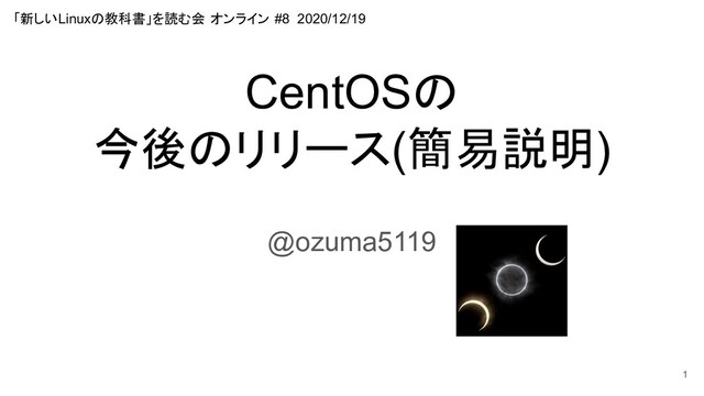 CentOSの 今後のリリース(簡易説明) @ozuma5119 1 「新しいLinuxの教科書」を読む会 オンライン #8 2020/12/19