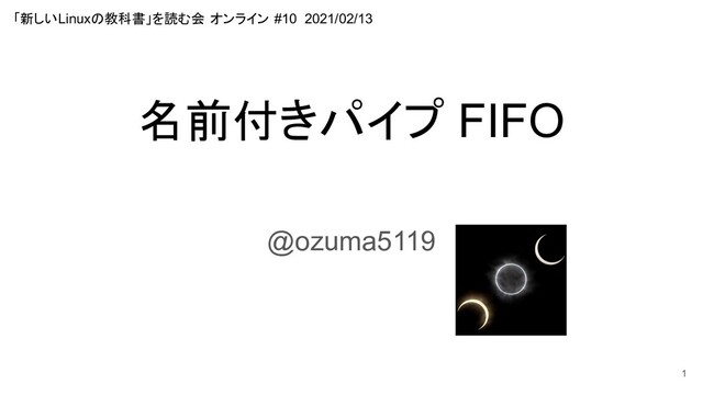 名前付きパイプ FIFO @ozuma5119 1 「新しいLinuxの教科書」を読む会 オンライン #10 2021/02/13