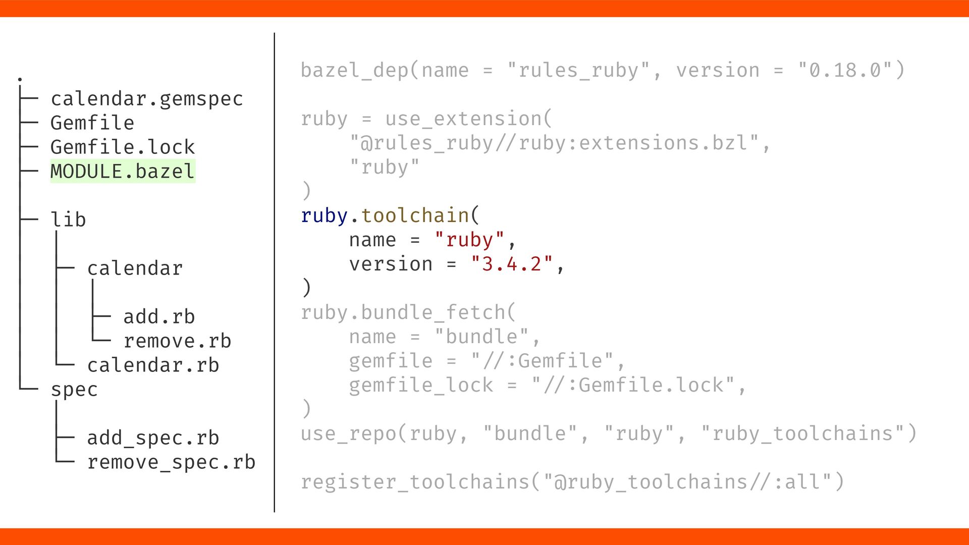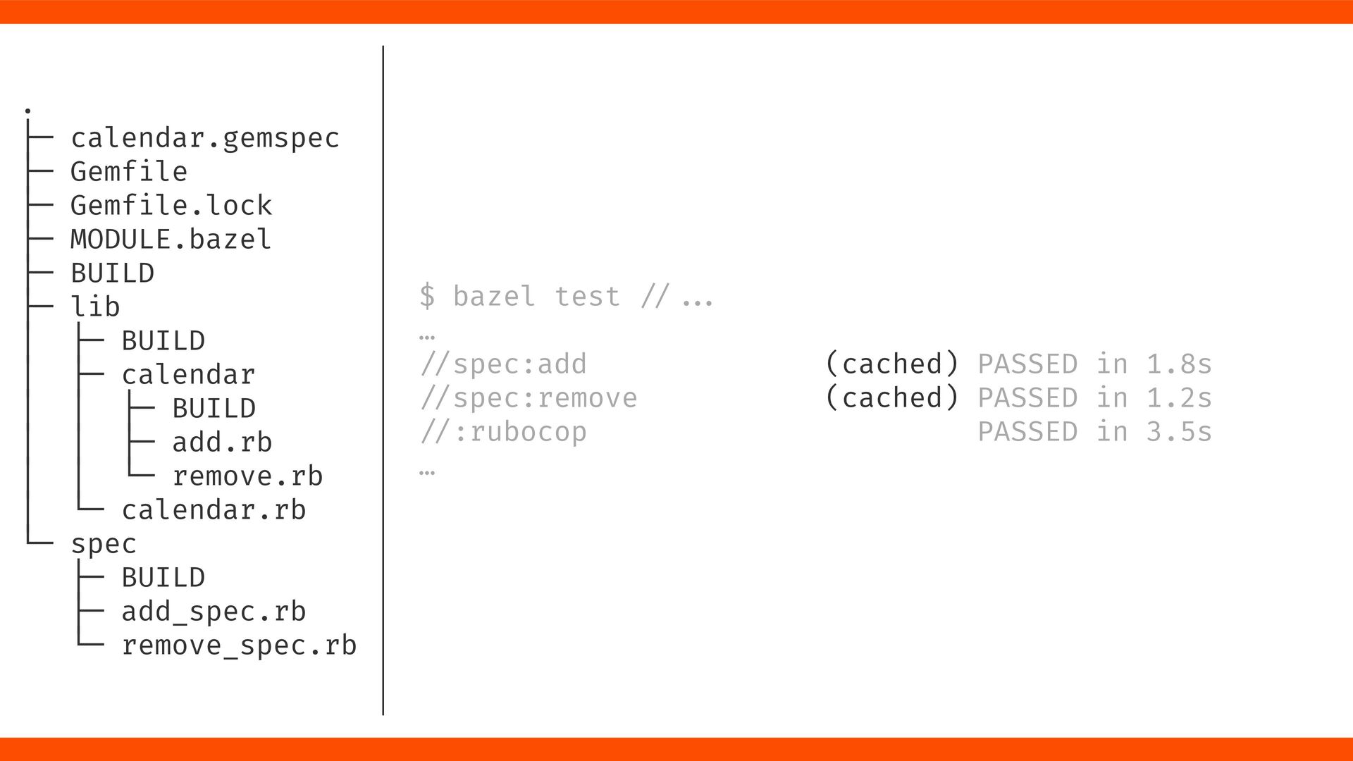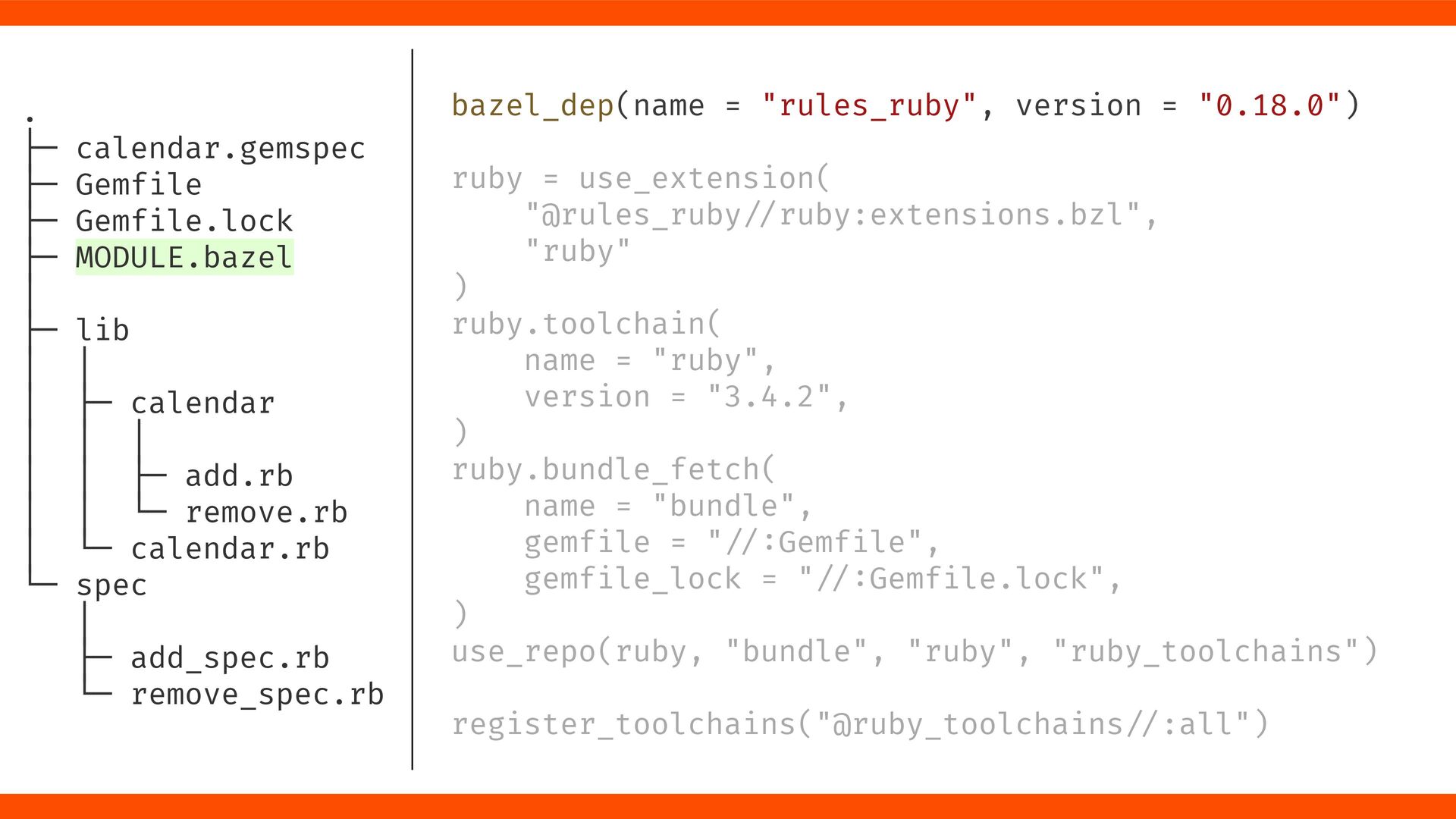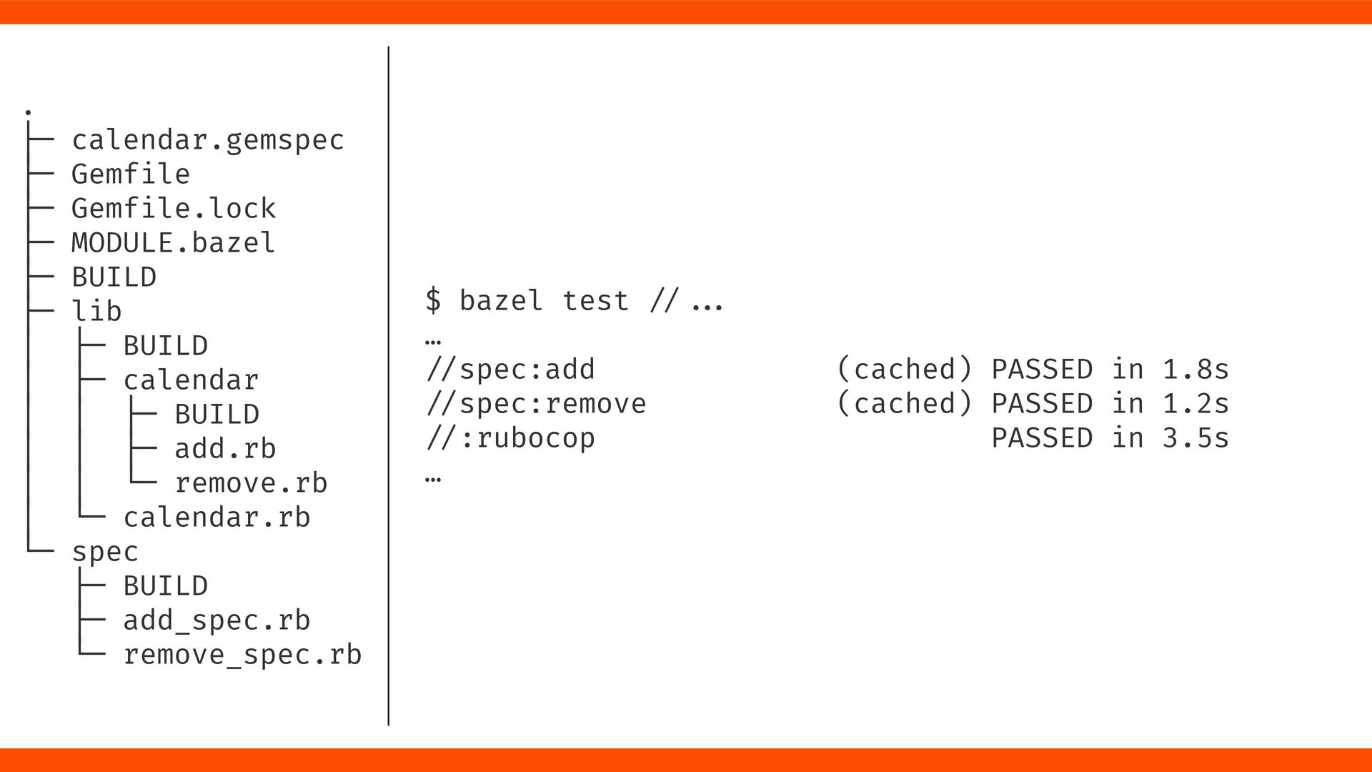 package 'lib': BUILD file not found in any of the following directories. Add a BUILD file to a directory to mark it as a package. … . ├─ calendar.gemspec ├─ Gemfile ├─ Gemfile.lock ├─ MODULE.bazel ├─ BUILD ├─ lib │ │ │ ├─ calendar │ │ │ │ │ ├─ add.rb │ │ └─ remove.rb │ └─ calendar.rb └─ spec │ ├─ add_spec.rb └─ remove_spec.rb