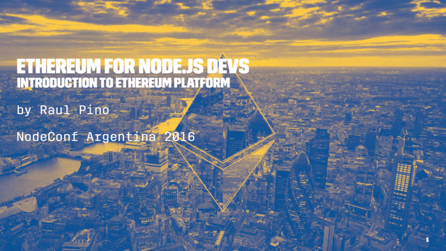 Introduction to the protocol itself, what is a blockchain and a smart contract. Live coding on how to develop a decentralised application (dApp) using node.js. As a conclusion I'll try to "handle the truth" about Ethereum's expectations on the world of distributed communications, and why node.js devs should care.