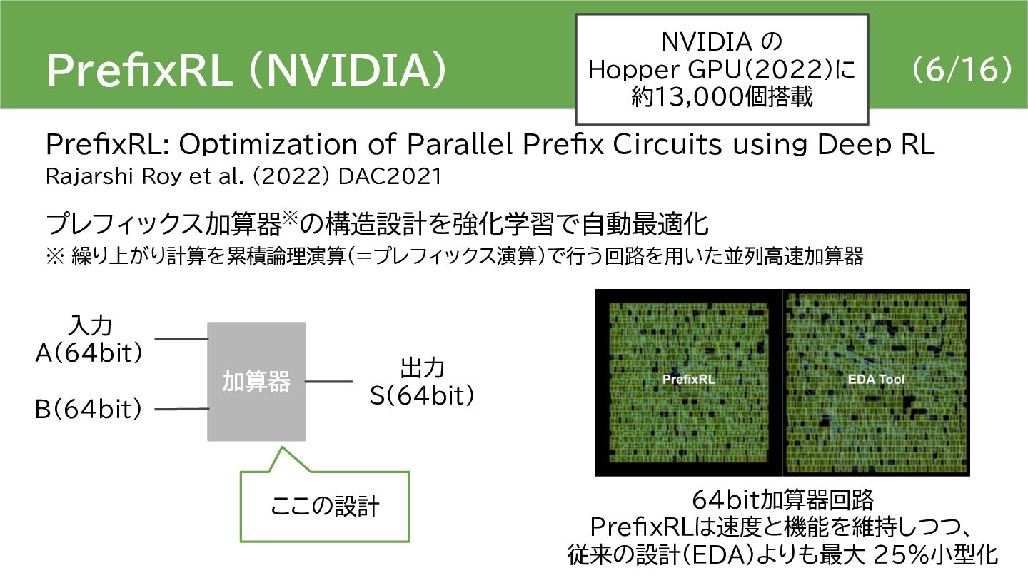 Learning | NVIDIA Technical Blog - PrefixRL: Optimization of Parallel Prefix Circuits using Deep RL - Rajarshi Roy et al. (2022) DAC2021 半導体チップにおける 加算器の設計