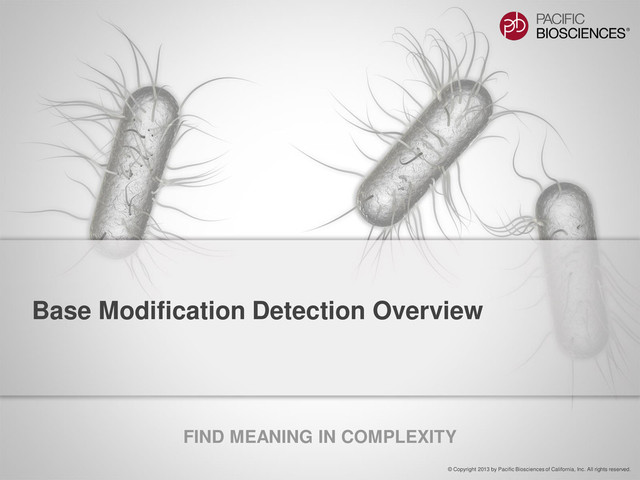 amplification – must use native DNA! – Except if using amplified control • DNA-damage repair – Does not impact methylated bases (4-mC, 6-mA, 5-mC) – Avoid for other types of modification (e.g., 8-oxo-G, dU) • Follow large-insert-library template-preparation recommendations for de novo assembly – Compatible with size-selection methods • Optional Tet1-conversion protocol on SampleNet • For resequencing, can use shorter-insert libraries – Proper mapping critical; insert size must exceed the repeat length – Multi-molecule analysis sufficient to perform motif analysis (exception rare DNA- damage events) Experimental Design Isolate DNA Template Preparation Sequencing Analysis