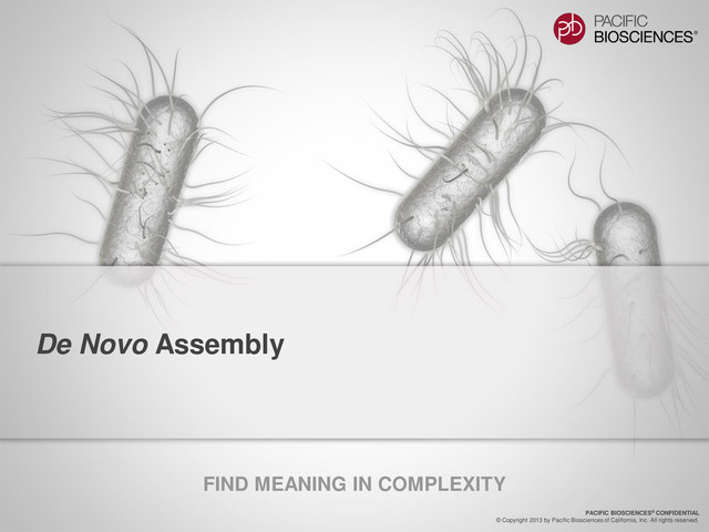 350 Mb genome • Draft assemblies generated from short-read data: – Illumina® System − 200 bp paired end, 100 bp, two libraries, ~80X − 10 kb mate pair, 36 bp, two libraries, ~15X − 3 kb mate pair, 36 bp ~4X – 454® System − 15 runs, some mate pair ~19X • Hybrid HGAP strategy – Contigs from Illumina assembly, 454 assembly, and 454/Illumina assembly (1X each) – 60 SMRT® Cells from size-selected 20 kb library, P4-C2 chemistry on PacBio® RS II (20X coverage) 454® and Illumina® Assembly Hybrid HGAP Assembly with PacBio® reads Improvement Number of Contigs 52,273 6,810 7.7X N50 Contig Size (bases) 10,406 146,050 14.7X Largest Contig (bases) 113,585 1,666,490 14X Number of assembled bases (Mb) 270 320 Closer to predicted size Collaboration with UIUC Aphid
