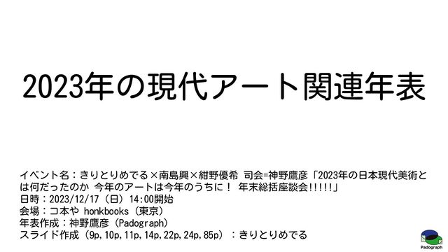 イベント名:きりとりめでる×南島興×紺野優希 司会=神野鷹彦「2023年の日本現代美術とは何だったのか 今年のアートは今年のうちに! 年末総括座談会!!!!!」