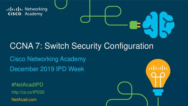 Cisco Confidential Module Objectives Module Title: Switch Security Configuration Module Objective: Configure switch security to mitigate LAN attacks Topic Title Topic Objective Implement Port Security Implement port security to mitigate MAC address table attacks. Mitigate VLAN Attacks Explain how to configure DTP and native VLAN to mitigate VLAN attacks. Mitigate DHCP Attacks Explain how to configure DHCP snooping to mitigate DHCP attacks. Mitigate ARP Attacks Explain how to configure ARP inspection to mitigate ARP attacks. Mitigate STP Attacks Explain how to configure PortFast and BPDU Guard to mitigate STP Attacks.