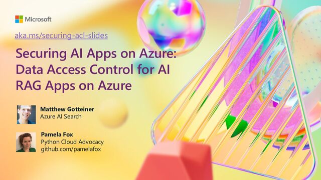 If you're trying to get an LLM to accurately answer questions about your own documents, you need RAG: Retrieval Augmented Generation. With a RAG approach, the app first searches a knowledge base for relevant matches to a user's query, then sends the results to the LLM along with the original question. What if you have documents that should only be accessed by a subset of your users, like a group or a single user? Then you need data access controls to ensure that document visibility is respected during the RAG flow. In this session, we'll show an approach using Azure AI Search with data access controls to only search the documents that can be seen by the logged in user. We'll also demonstrate a feature for user-uploaded documents that uses data access controls along with Azure Data Lake Storage Gen2.
