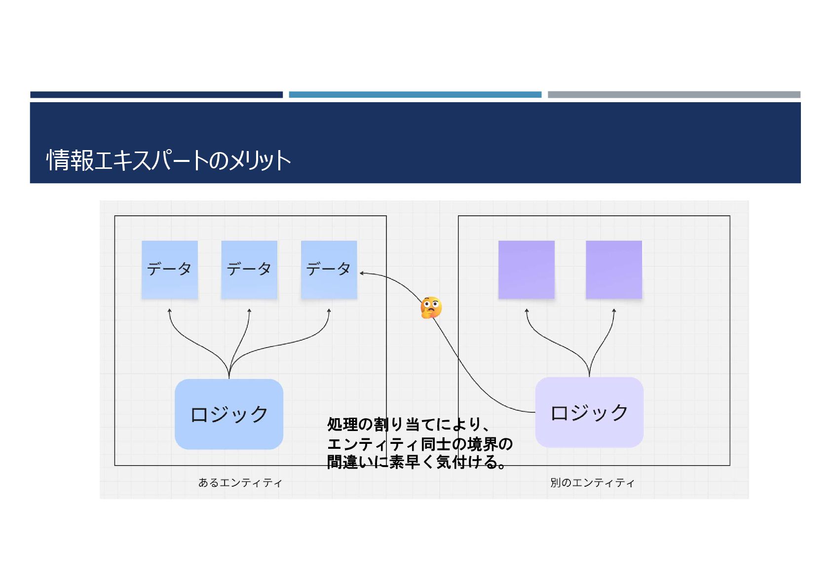 情報エキスパートのメリット 処理の割り当てにより、 エンティティ同士の境界の 間違いに素早く気付ける。