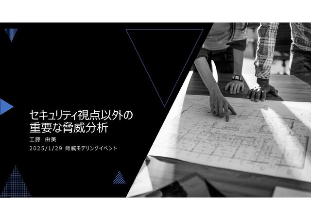 セキュリティ視点以外の 重要な脅威分析 工藤 由美 2025/1/29 脅威モデリングイベント
