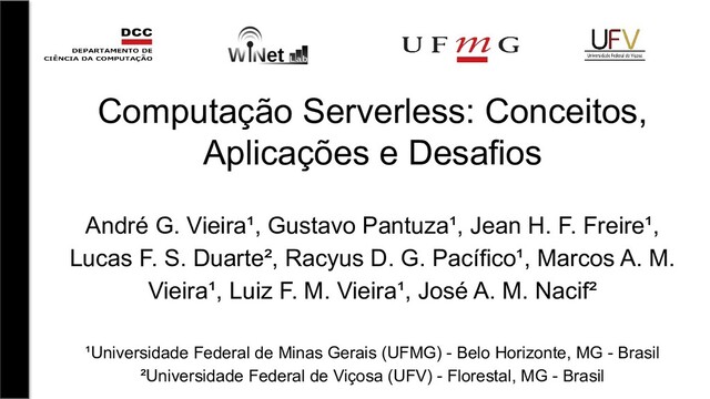 Slides da apresentação do Minicurso sobre Computação Serverless apresentado durante a conferência SBRC em 2020. Um trabalho em parceria da UFMG com UFV. Os slides representam o artigo disponível em: