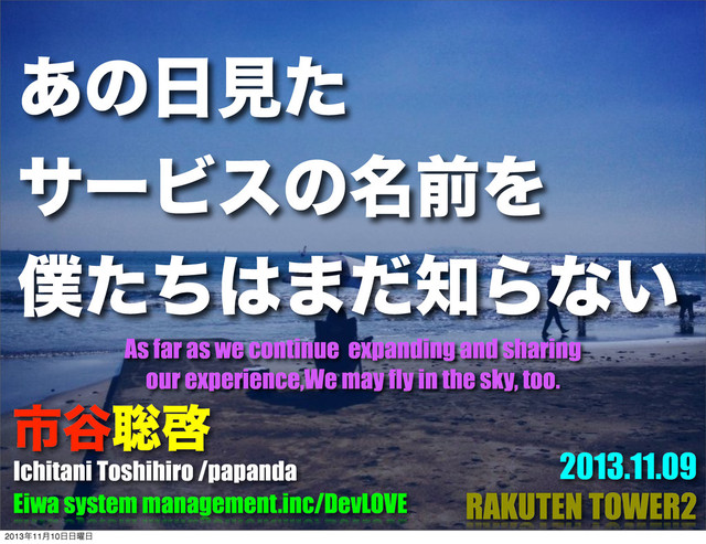 Eiwa system management.inc/DevLOVE As far as we continue expanding and sharing our experience,We may fly in the sky, too. 201311݄10༵