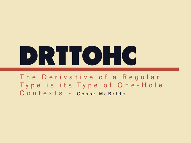 - How can we derive a one-hole context from any given type? (How can we represent a specific location in an arbitrarily complex tree, type, etc)