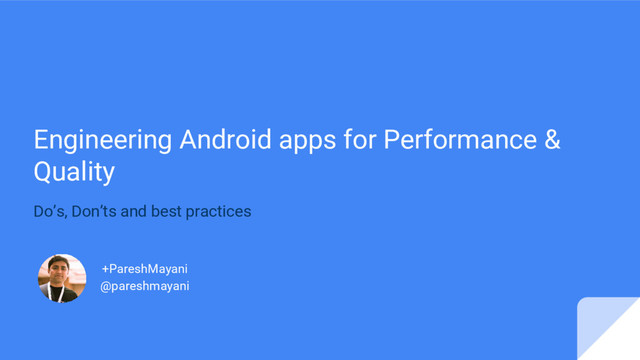 Engineering Android apps for Performance & Quality