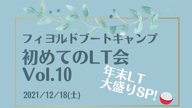 初めてのLT会 Vol.10 年末LT 大盛りSP! 2021/12/18(土) フィヨルドブートキャンプ