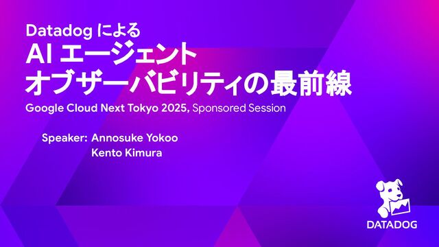 エージェントエコシステムの拡大 AI を監視 • LLM Observability • AI Integration • Agent Monitoring AI で監視 • Bits AI • Watchdog • Google Cloud 上でのマネージドな AI エージェント実行環境 • Agent Development Kit • Vertex AI • Gemini CLI • etc. Datadog × Google Cloud で実現する AI エージェント オブザーバビリティの民主化