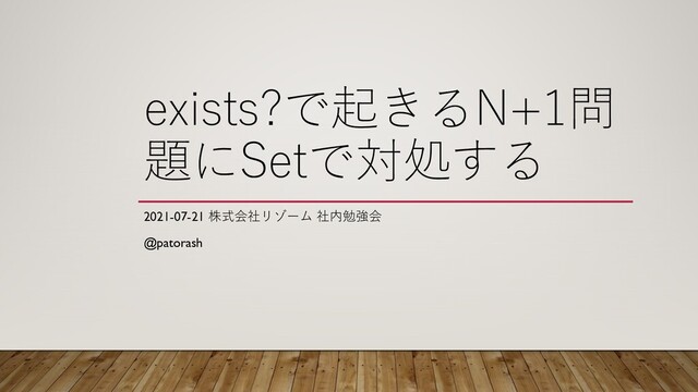 exists?で起きるN+1問 題にSetで対処する 2021-07-21 株式会社リゾーム 社内勉強会 @patorash