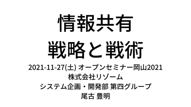 情報共有 戦略と戦術 2021-11-27(土) オープンセミナー岡山2021 株式会社リゾーム システム企画・開発部 第四グループ 尾古 豊明