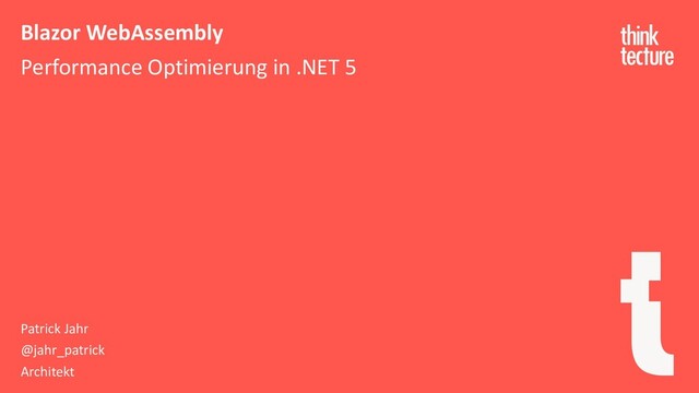 [email protected] Twitter: @jahr_patrick Slides: https://thinktecture.com/patrick-jahr Blazor WebAssembly Performance Optimierung in .NET 5 Patrick Jahr