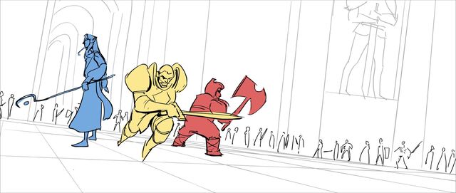 The fight among 3 heroes with a skeleton army was quite a challenge. Shout out to Ken (Joey Kenneth Blocker) who helped research and brainstorm the choreography with me, and shout out to the preproduction team of over 20 artists. It is amazing working with talented and passionate people. I was always looking forward to the dailies.