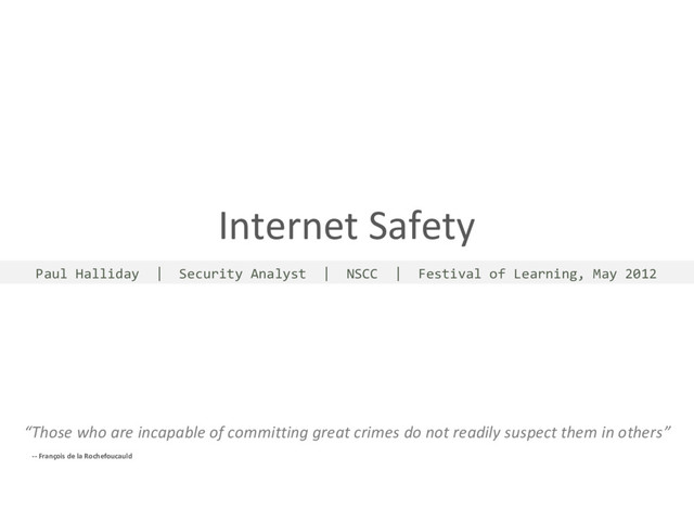 Festival of Learning, May 2012 “Those who are incapable of committing great crimes do not readily suspect them in others” -- François de la Rochefoucauld