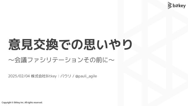 Copyright © Bitkey Inc. All rights reserved. 意見交換での思いやり 〜会議ファシリテーションその前に〜 2025/02/04