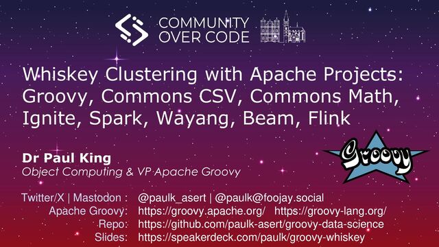var file = WhiskeySpark.classLoader.getResource('whiskey.csv').file var rows = spark.read().format('com.databricks.spark.csv') .options(header: 'true', inferSchema: 'true').load(file) String[] colNames = rows.columns().toList() - ['RowID', 'Distillery'] var assembler = new VectorAssembler(inputCols: colNames, outputCol: 'features') var dataset = assembler.transform(rows) var kmeans = new KMeans(k: 5, seed: 1L) var model = kmeans.fit(dataset) println 'Cluster centers:' model.clusterCenters().each { println it.values().collect { sprintf '%.2f', it }.join(', ') } var result = model.transform(dataset) var clusters = result.toLocalIterator().collect { row -> [row.getAs('prediction'), row.getAs('Distillery')] }.groupBy { it[0] }.collectValues { it*.get(1) } clusters.each { k, v -> println "Cluster$k: ${v.join(', ')}"} spark.stop() Cluster centers: 2.89, 2.42, 1.53, 0.05, 0.00, 1.84, 1.58, 2.11, 2.11, 2.11, 2.26, 1.58 1.45, 2.35, 1.06, 0.26, 0.06, 0.84, 1.13, 0.45, 1.26, 1.65, 2.19, 2.10 1.83, 3.17, 1.00, 0.33, 0.17, 1.00, 0.67, 0.83, 0.83, 1.50, 0.50, 1.50 3.00, 1.50, 3.00, 2.80, 0.50, 0.30, 1.40, 0.50, 1.50, 1.50, 1.30, 0.50 1.85, 2.20, 1.70, 0.40, 0.10, 1.85, 1.80, 1.00, 1.35, 2.00, 1.40, 1.85 Cluster0: Aberfeldy, Aberlour, Auchroisk, Balmenach, BenNevis, Benrinnes, BlairAthol, Dailuaine, Dalmore, Edradour, Glendronach, Glendullan, Glenfarclas, Glenrothes, Longmorn, Macallan, Mortlach, RoyalLochnagar, Strathisla Cluster1: AnCnoc, Auchentoshan, Aultmore, Balblair, Benriach, Bladnoch, Bunnahabhain, Cardhu, Craigganmore, Dufftown, GlenElgin, GlenGrant, GlenKeith, GlenMoray, Glenallachie, Glenfiddich, Glengoyne, Glenkinchie, Glenlossie, Glenmorangie, Linkwood, Loch Lomond, Mannochmore, RoyalBrackla, Speyside, Strathmill, Tamdhu, Tamnavulin, Teaninich, Tobermory, Tullibardine Cluster3: Ardbeg, Caol Ila, Clynelish, GlenScotia, Isle of Jura, Lagavulin, Laphroig, Oban, OldPulteney, Talisker Cluster4: Ardmore, Belvenie, Benromach, Bowmore, Bruichladdich, Craigallechie, Dalwhinnie, Deanston, GlenGarioch, GlenOrd, Glenlivet, Glenturret, Highland Park, Inchgower, Knochando, OldFettercairn, Scapa, Springbank, Tomatin, Tomintoul Cluster2: ArranIsleOf, GlenDeveronMacduff, GlenSpey, Miltonduff, Speyburn, Tomore