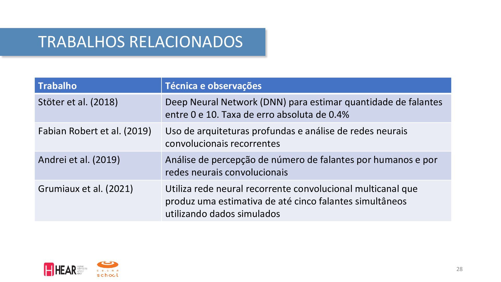 em: <https://www.kaggle.com/ananta/solving-data-science-problems-usingcrisp-dm/notebook>. Acesso em: 15 de dezembro de 2021. IBM. What is computer vision? 2021. Disponível em: <https://www.ibm.com/topics/computer-vision>. Acesso em: 30 de janeiro de 2021. MAKEABILITY, Lab. Signals: Frequency Analysis. 2020. Disponível em: <https://makeabilitylab.github.io/physcomp/signals/FrequencyAnalysis/index.html>. Acesso em: 04 de março de 2022. VARGAS, A; PAES, A; VASCONCELOS, C. Um estudo sobre redes neurais convolucionais e sua aplicação em detecção de pedestres. In: PROCEEDINGS of the XXIX Conference on Graphics, Patterns and Images. [S.l.: s.n.], 2016. P. 1–4. Fórum de Segurança Pública. Segurança em Números. Julho 2021. Disponível em: < https://forumseguranca.org.br/wp-content/uploads/2021/07/infografico-2020-v6.pdf> Fórum de SP. Infográfico visível e invisível. Maio 2021. Disponível em: <https://forumseguranca.org.br/wp-content/uploads/2021/05/infografico-visivel-e-invisivel-2ed.pdf> ANDREI, Valentin et al. Overlapped Speech Detection and Competing Speaker Counting—Humans Versus Deep Learning. IEEE Journal of Selected Topics in Signal Processing, v. 13, n. 4, p. 850–862, 2019. FABIAN-ROBERT et al. CountNet: Estimating the Number of Concurrent Speakers Using Supervised Learning. IEEE/ACM Transactions on Audio, Speech, and Language Processing, v. 27, n. 2, p. 268–282, 2019. GRUMIAUX, Pierre-Amaury et al. High-Resolution Speaker Counting in Reverberant Rooms Using CRNN with Ambisonics Features. In: 2020 28th European Signal Processing Conference (EUSIPCO). [S.l.: s.n.], 2021. P. 71–75. PANDEY, S.; BANERJEE, A. A. Distributed Approach to Speaker Count Problem in na Open-Set Scenario by Clustering Pitch Features. IEEE Signal Processing Magazine, abr. 2021. PENG, Chao; WU, Xihong; QU, Tianshu. Competing Speaker Count Estimation on the Fusion of the Spectral and Spatial Embedding Space. In: PROC. Interspeech 2020. [S.l.: s.n.], 2020. P. 3077–3081. ZHANG, Wangyou et al. End-to-End Overlapped Speech Detection and Speaker Counting with Raw Waveform. In: 2019 IEEE Automatic Speech Recognition and Understanding Workshop (ASRU). [S.l.: s.n.], 2019. P. 660–666. ZHONG-QIU, Wang; WANG, DeLiang. Count And Separate: Incorporating Speaker Counting For Continuous Speaker Separation. In: ICASSP 2021 - 2021 IEEE International Conference on Acoustics, Speech and Signal Processing (ICASSP). [S.l.: s.n.], 2021. P. 11–15. WANG, Wei et al. Speaker Counting Model based on Transfer Learning from SincNet Bottleneck Layer. In: 2020 IEEE International Conference on Pervasive Computing and Communications (PerCom). [S.l.: s.n.], 2020. P. 1–8. WIRTH, Rüdiger; HIPP, Jochen. CRISP-DM: Towards a Standard Process Model for Data Mining. In: PROCEEDINGS of the Fourth International Conference on the Practical Application of Knowledge Discovery and Data Mining. [S.l.: s.n.], 2000. P. 29–39. 41 REFERÊNCIAS BIBLIOGRÁFICAS