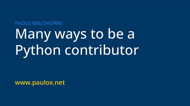 There are many ways to contribute to Python, and in this talk, newcomers to the community will discover new ways to get involved in the Python community, and community members will get ideas for getting new people involved.