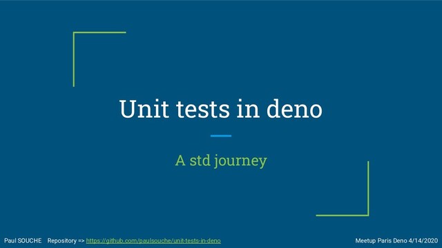 years later 8 deno test Hey Lilian ! Deno looks so great but how do you test ? Try yourself and make a presentation ! Ok but what are the patterns ? What do you write ? Ok then...