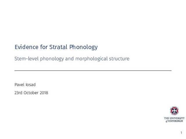 of belonging to the stem level • Cyclicity • Exceptionality • Variable application • This is despite the direct evidence for internal stem constituency often being somewhere between ‘subtle’ and ‘non-existent’ • No obvious evidence for stratification, either • Nevertheless, Stratal Phonology makes the right predictions 32
