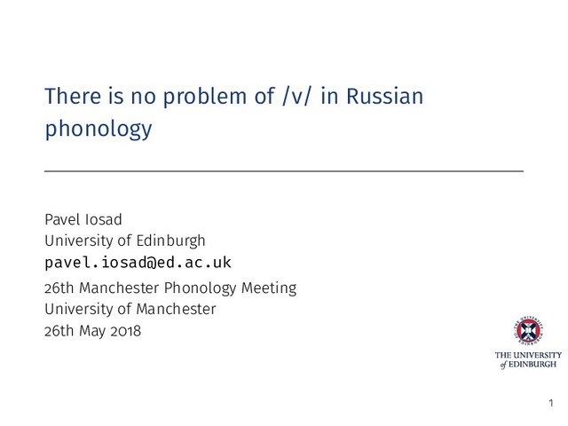 should be handled by the phonetic component. […] These con- clusions essentially remove from the phonology nearly all effects treated as postlexical phonology by Kiparsky (1985).’ (Padgett 2002, p. 6) We should treat this seriously! • If we interrogate the phonological status of sonorant (de)voicing, we should apply the same rigour to /v/ • No good evidence that /v/ (de)voicing is phonological • Plenty of suggestive evidence that it is phonetic 17