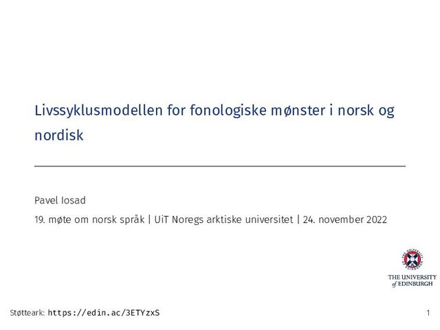 utviklinga av både lydsystem og morfologi på nordisk grunn • Det er mykje godt å finne i velkjende data om vi ser på det på nytt Støtteark: https://edin.ac/3ETYzxS 46