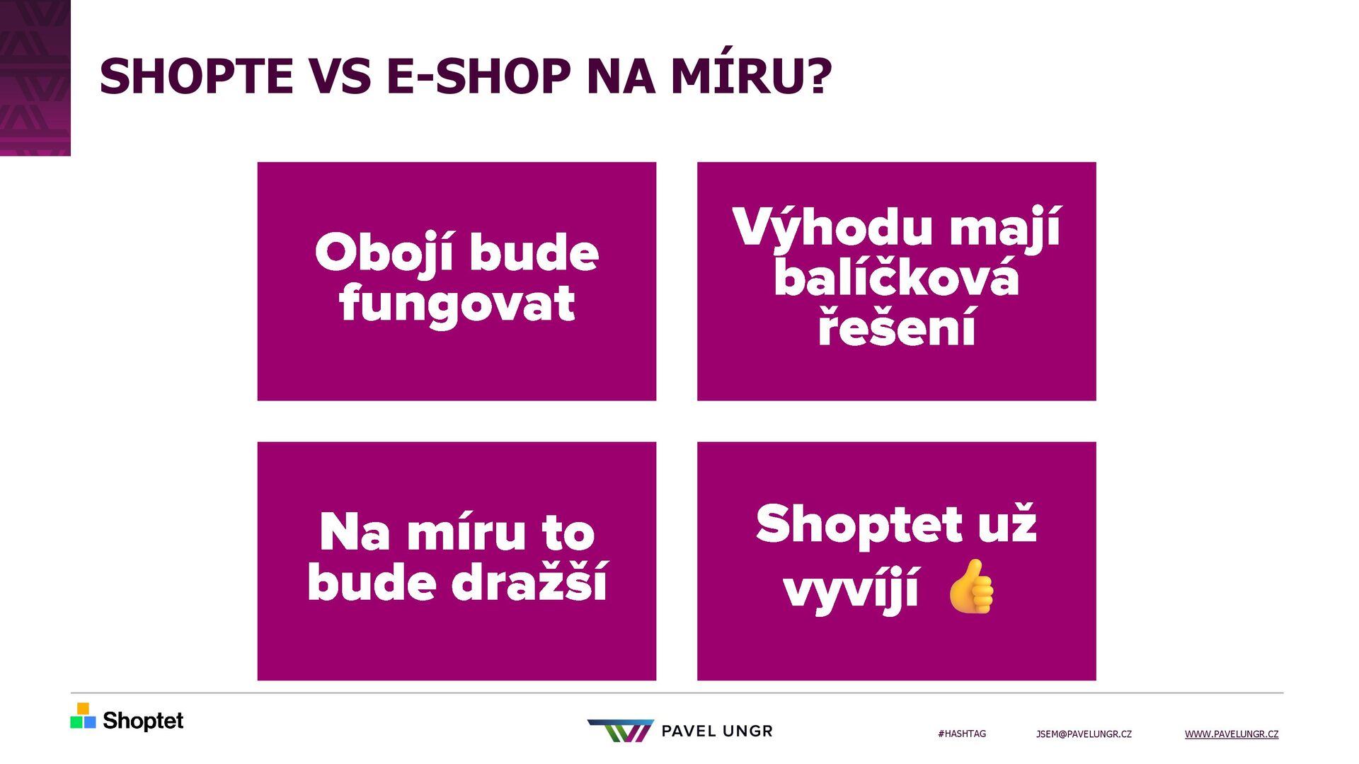 3. #HASHTAG [email protected] WWW.PAVELUNGR.CZ SHOPTE VS E-SHOP NA MÍRU? Obojí bude