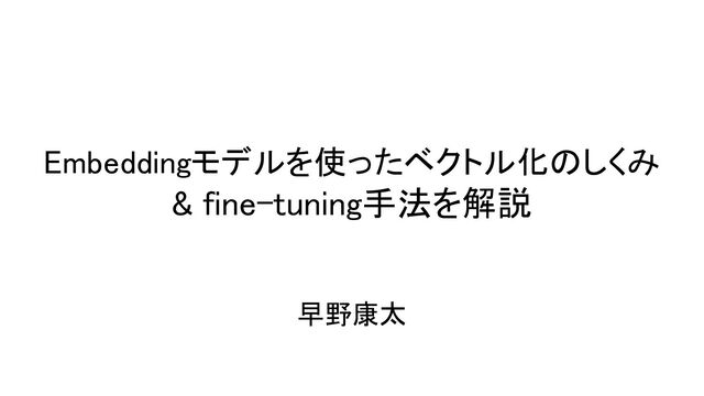 Embeddingモデルを使ったベクトル化のしくみ & fine-tuning手法を解説 早野康太