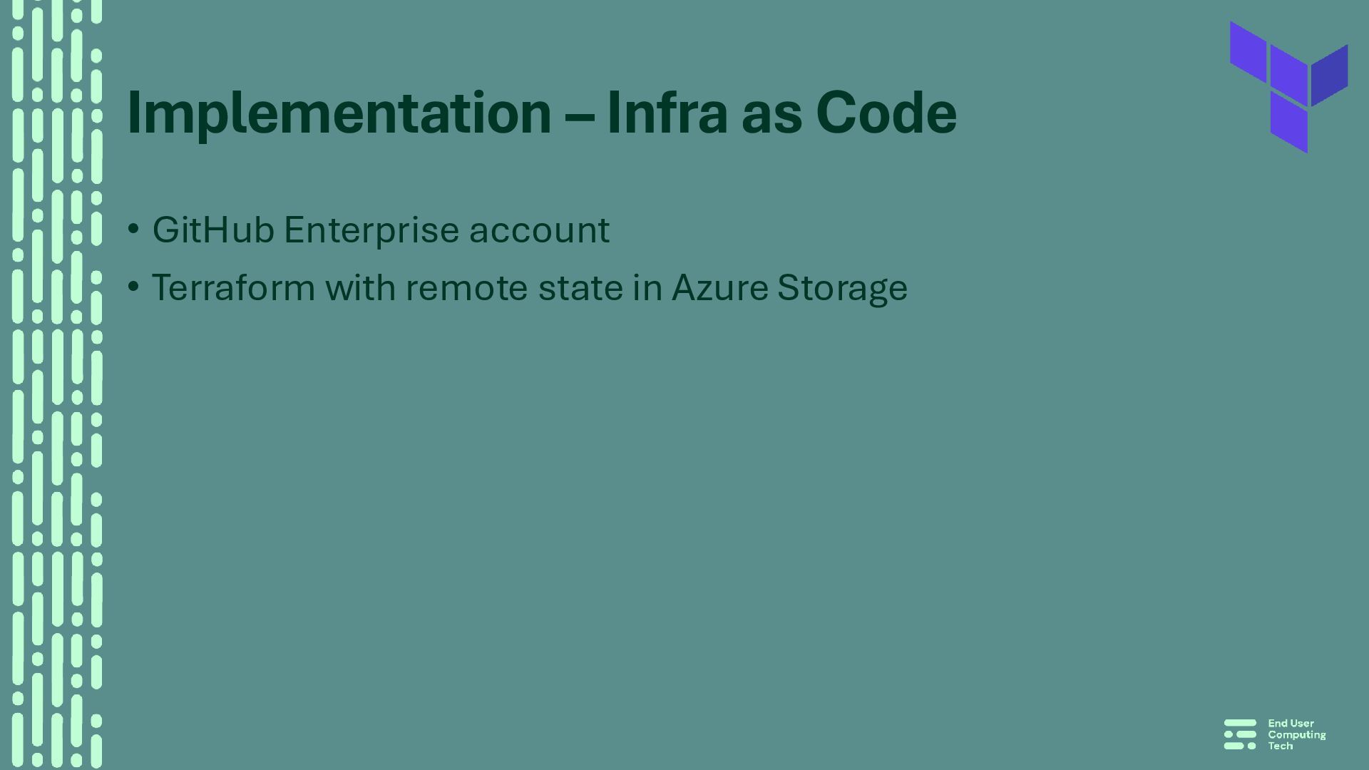10. Implementation – Infra as Code • GitHub Enterprise account •