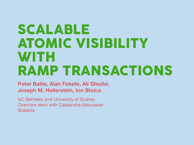 Slides for "Scalable Atomic Visibility with RAMP Transactions" by Bailis et al., appearing in SIGMOD 2014
