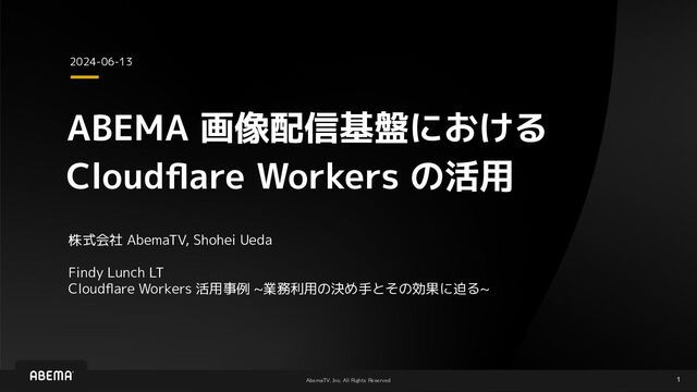 ABEMA 画像配信基盤における Cloudflare Workers の活用 株式会社 AbemaTV, Shohei Ueda