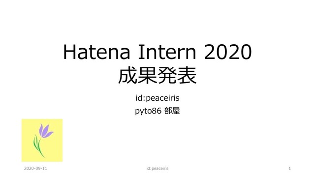 Hatena Intern 2020 成果発表 id:peaceiris pyto86 部屋 2020-09-11 id:peaceiris 1