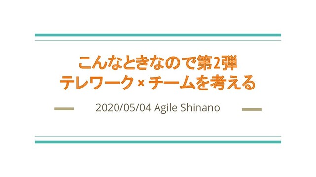 こんなときなので第2弾 テレワーク × チームを考える in Agile Shinanoのオープニングスライドです! https://agile-shinano.connpass.com/event/174031/