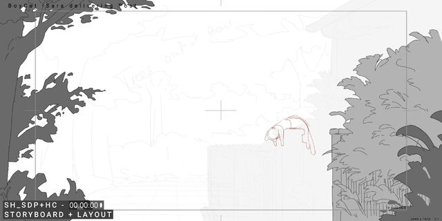 She runs off towards the camera.