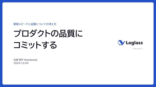 プロダクトの品質に コミットする 石畑 翔平 @pekepek 2024.12.04