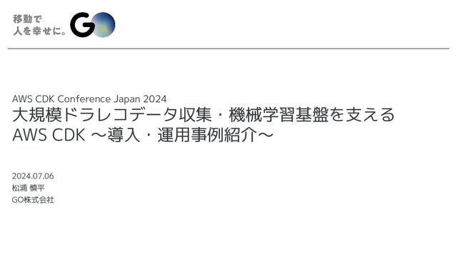 AWS CDK Conference Japan 2024 大規模ドラレコデータ収集・機械学習基盤を支える AWS CDK 〜導入・運用事例紹介〜 2024.07.06