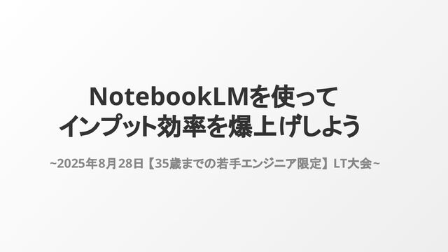 NotebookLMを使って インプット効率を爆上げしよう ~2025年8月28日 【35歳までの若手エンジニア限定】 LT大会~